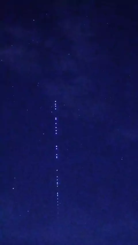 Satélites da Starlink sobrevoando no céu.
