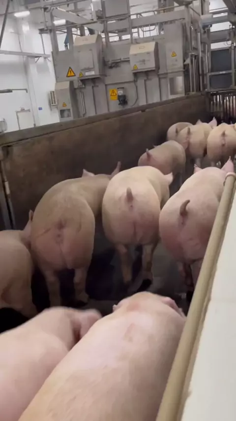 Dióxido de carbono tonto, pessoa moralista bem-estar abate moderno porco abate e linha de processamento