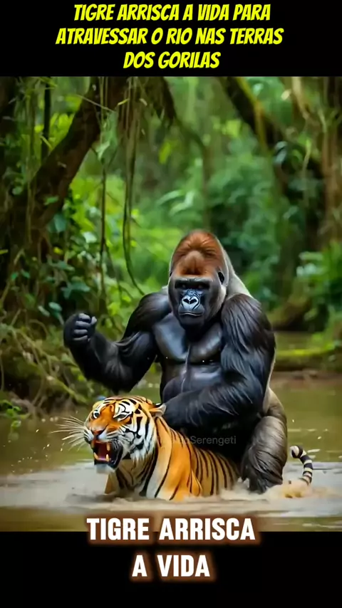 tigre arrisca só atravessar rio território dos gorilas #NarraStarsa #educação #maisviews #viraliza # #animais