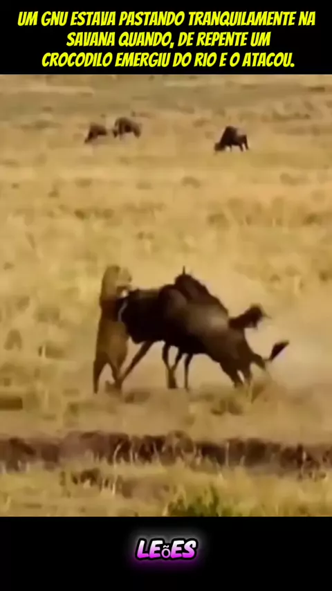 Aqui vai uma história sobre um gnu: Um gnu estava pastando tranquilamente na savana quando, de repente, um crocodilo emergiu do rio e o atacou. O gnu reagiu rapidamente e correu #viraliza #maisviews #foryou #ia #vidaanimal