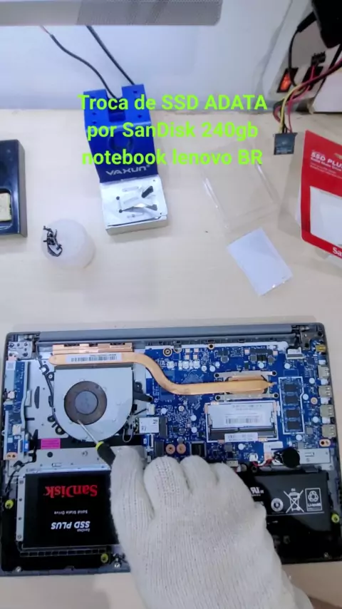 Troca de SSD SATA ADATA por SanDisk 240gb em notebook lenovo BR. #notebook #ClimaNatalino #técnico #gamer #Hardware