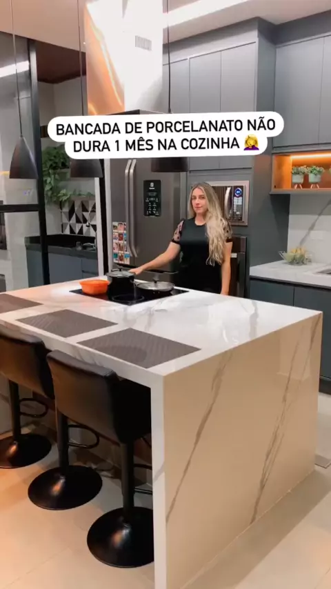 Recebo muitas dúvidas sobre a ilha e as bancadas de porcelanato que tenho em casa a 3 anos, muitas pessoas tem medo, pois acham que não é resistente ou até mesmo que mancha com facilidade. Porém o porcelanato é muito resistente, aqui o uso da bancada e diário, temos o fogão instalado nela, já batemos panela já teve respingo de comida , e o resultado está aí .. intacta e sem manchas 🥰 . . . . . #cozinhaplanejada #cozinhacomilhacentral #cozinhacomilha #cozinhandocomamor #cozinhaamericana