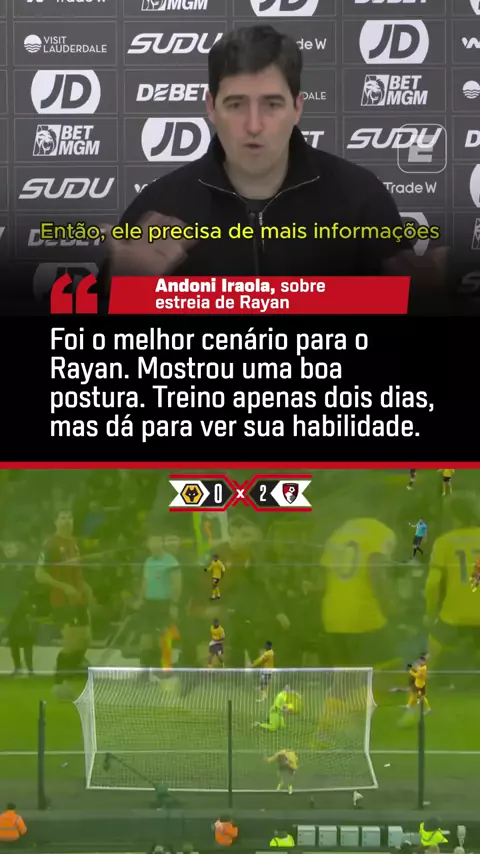 RAYAN CHEGANDO COM MORAL! O técnico do Bournemouth, Andoni Iraola, elogiou muito o jovem brasileiro depois de sua estreia na Premier League!