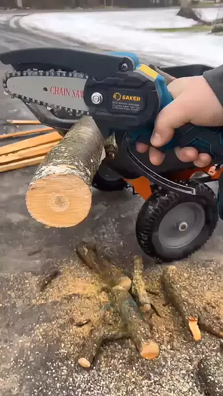 Mini Motosserra Recarregável com bateria de lítio, potente e portátil. #motoserra #serra #portatil #cortar #Árvore