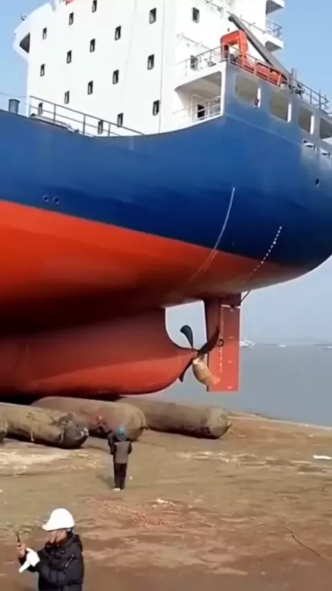 Big Ship Launch⚓️🛟⚓️ #big #ship #bigwaves #fyp #Dangerous