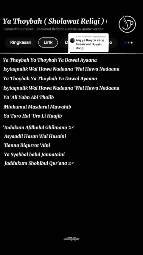 Membalas @abdurrhmannn versi full ya bng selamat Bersholawat semoga bermanfaat 🙏#sholawat#yathoybah#karaoke#liriksholawat#sholawatan#sholawatnya_bikin_adem#sholawatmerdu#sholawatpenyejukhati#sholawatkaraoke#freepalestine🇵🇸❤️💪