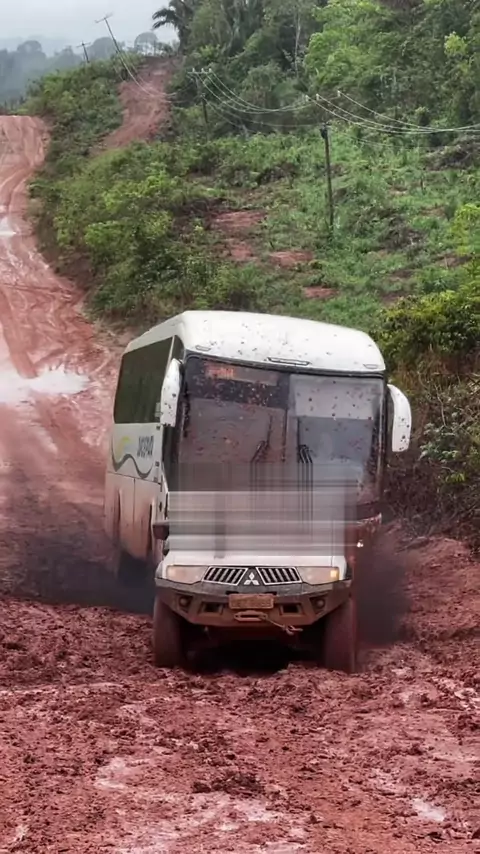 Olha. Só o que vai acontecer com essa caminete, esse ônibus de teste lançar? #CarnaKwai #atoleiro #lama #caminhonete #camionete