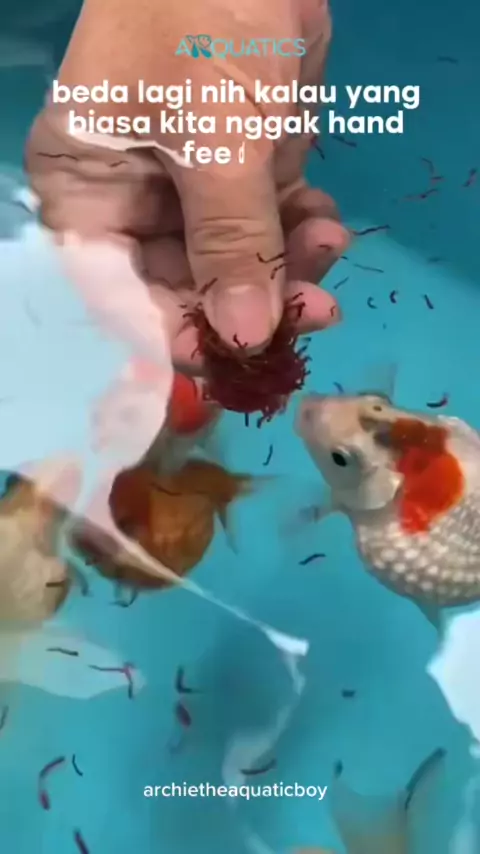 kalian team hand feeding atau tidak ni? komen ya!‼️🪱🫶🏻#arquatics#goldfish#ikanunik#handfeedingfish