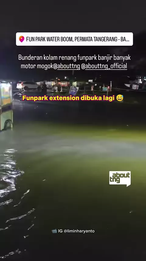 Banjir malam ini di bundaran Funpark Permata Tangerang. Semangat buat bapak yang lagi nerjang banjir sambil angkut meja 😭 #abouttng #tangerang #banjir