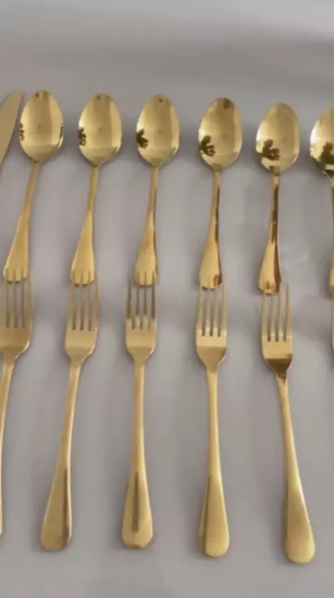 Estou apaixonada por esse conjunto de talheres dourados. Diversas opções! #dourado #talher