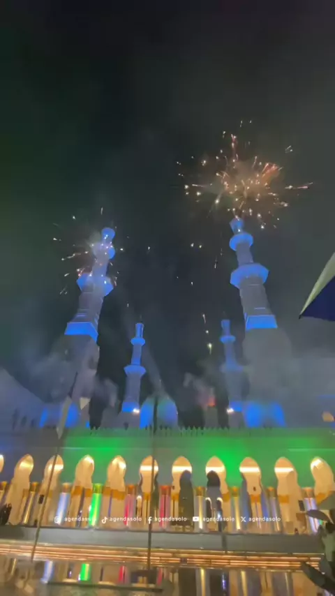 Pesta Kembang Api dalam Rangka Hari Nasional Uni Emirat Arab (UEA) di Masjid Syeikh Zayed Solo malam ini, Senin (2/12).