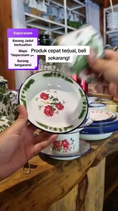 Tatakan gelas biasanya pakai ukuran piring diameter 14cm, ada warna hijau, biru dan merah. Bahan enamel jadul dg motif bungaa #piring #piringenamel #piringjadul #piringseng