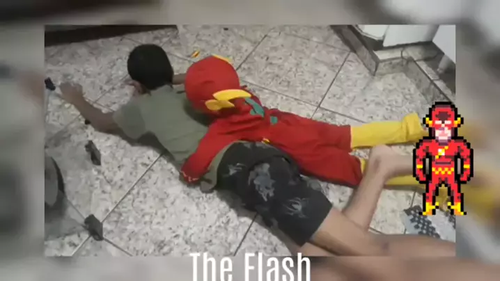 Quando eles inventam brincadeiras. π€ O flash π #superheroi #ideias #theflash #socorro #hadassacunha