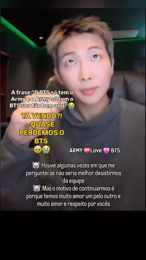 Namjoon falando sobre o motivo do BTS n茫o ter acabado, O BTS s贸 tem o Army e o Army s贸 tem o BTS e sobre #ARMY #BTS #OT7 #armyforever #fy