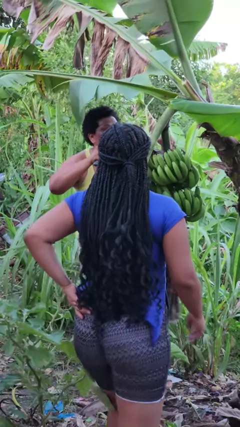 La vecina quiere llevarse mi guineo de mi propiedad.