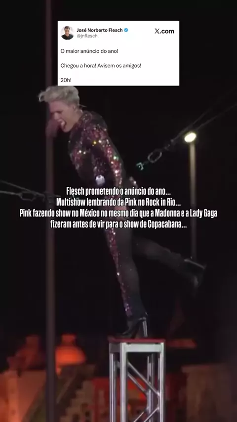 PINK NO TODO MUNDO NO RIO 2026! Flesch prometendo o anúncio do ano… Multishow lembrando da Pino no Rock in Rio… Pink fazendo show no México no mesmo dia que a Madonna e a Lady Gaga fizeram antes de vir para o show de Copacabana… PODE CONFIRMAR! #Pink #copacabana #riodejaneiro #todomundonorio #corona