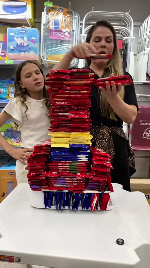 E aí, acertou quantas barras de chocolates tem nessa torre gigante? #desafiodaregra #barrasdechocolate #chocolate #equilibrio #candychallenge