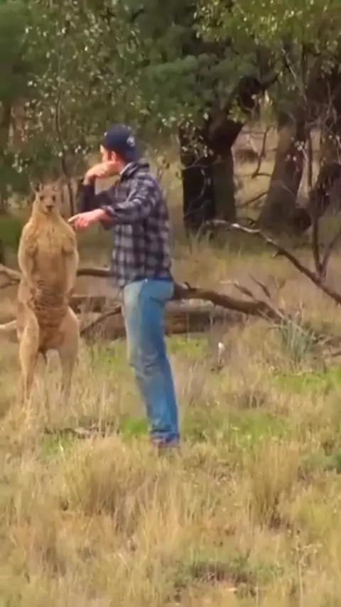 Canguru fica sem reação e foge após levar soco do dono do cachorro. #Planeta #🌎Animal