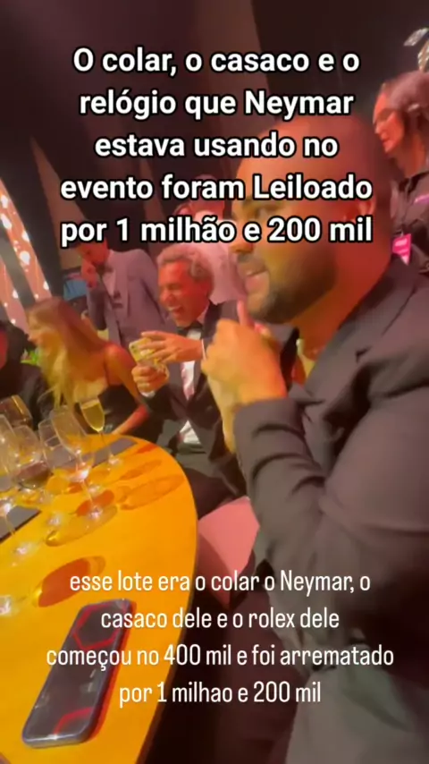 O colar, o casaco e o relógio que Neymar estava usando no evento foram Leiloado por 1 milhão e 200 mil #Neymar #leilaodoneymar #leilao