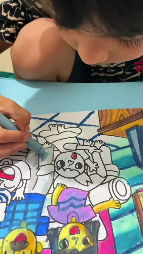 Pertama x belajar teknik gradasi warna, hasilnya lumayan #AnakADHD #disleksia #parentingadhdkids #coloringbook