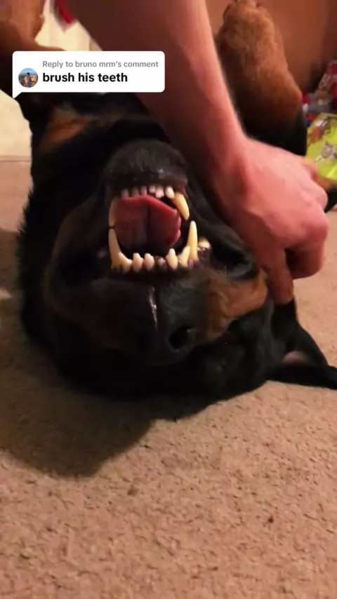 Replying to @bruno mrm ok brushing this beasts teeth. And this hapoened. Wait for it#OhNo#dogbite#vicious#puppy#excited#triggerwarning#rottierumble#PetsOf#ryanprater4#bear