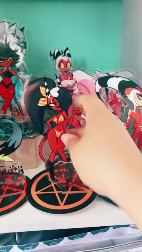Arrumando a prateleira para eles # helluvaboss # vivzepop # kawaii # standees # acrylstandees # helluvabossstolas # helluvabossblitz # helluvbossmoxxie # helluvbossmille # helluvabossloona # collection # collector