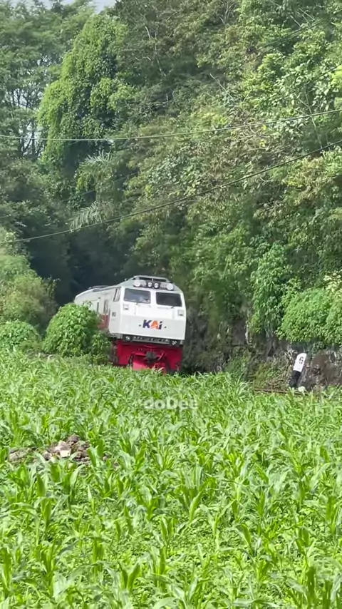 Kereta Api muncul dari celah tebing diatas bukit. Inframe: KA Parcel/kargo #kereta #railway #railfansindonesia #trainspotting #pppppppppppppppppppppp