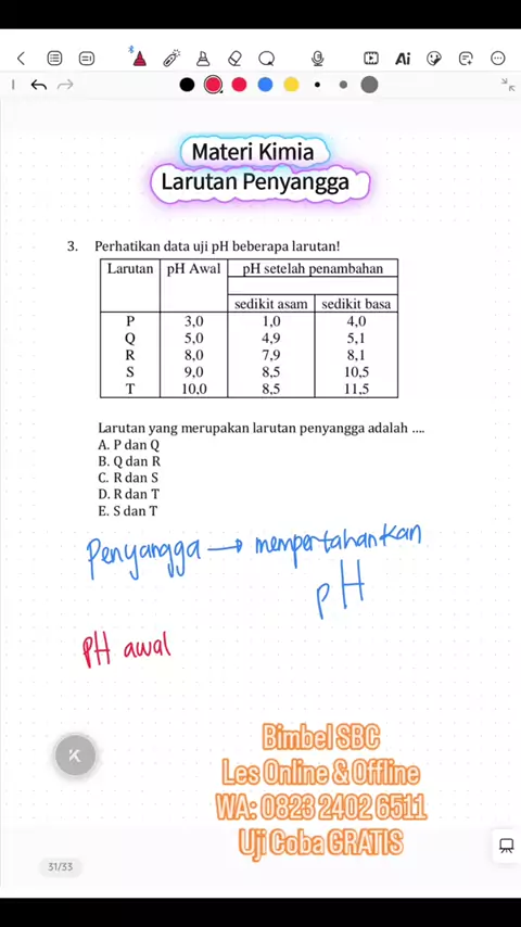 Kimia Kelas XI BAB LARUTAN PENYANGGA Bergabung sekarang dan wujudkan masa depan cerah bersama BIMBEL SBC! β¨ πΉ Les online dan offline πΉ SD, SMP, SMA πΉ Program belajar yang menyenangkan dan efektif Ayo, jadi bagian dari perubahan yang positif!π‘ π Info lebih lanjut: 0823 2402 6511 #bimbelcaruban #lesprivat #leskimia #bimbelonline #lesonline