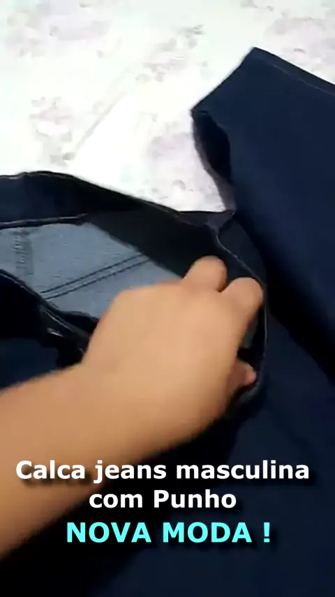 Calca jeans masculina com Punho corte RetoTadicional De Qualidade comLycra Elastano