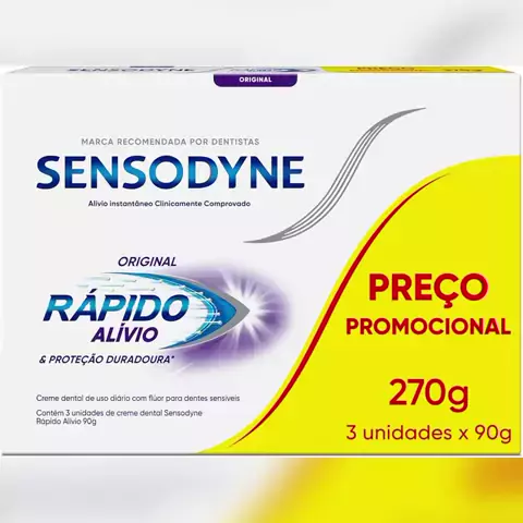 đŠ· Sensodyne RĂĄpido AlĂvio Leve 3 Pague 2 â 270g por R$24,60! Adeus dor na sensibilidade dos dentes: â