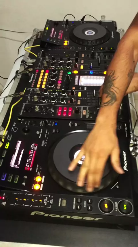 Mesa de DJ passando o som