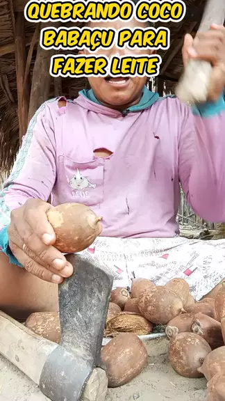 quebrando coco babaçu para fazer leite