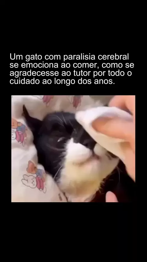 Essa cena que viralizou nas redes sociais geralmente mostra um gato com Hipoplasia Cerebelar (muitas vezes referida popularmente como "paralisia cerebral" felina) que parece chorar ou ficar intensamente grato ao ser alimentado.