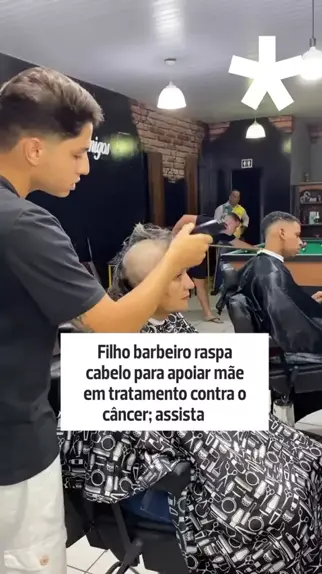 Filho Barbeiro Raspa o Cabelo para apoiar mâe com cançer.