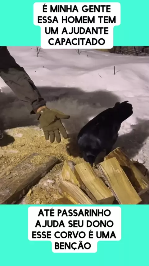 CORVO AJUDA HOMEM A CORTAR MADEIRA