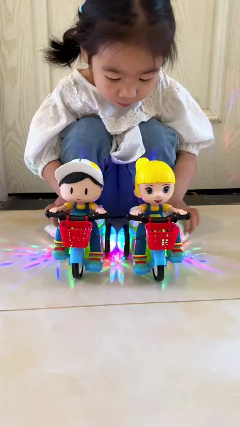 Há três acrobacias compradas pela minha tia, que podem realmente montar, girar 360, música leve, e a filha joga três acrobacias.