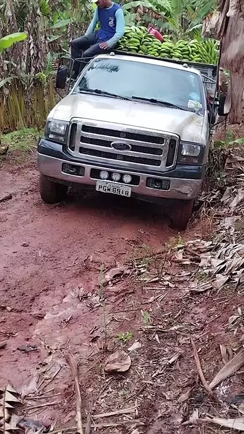CAMINHÃO F4000 CARREGADO DE BANANA NÃO CONSEGUE SUBIR POR CONTA DA LAMA