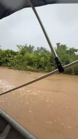 Uma nova expedição descendo o rio abaixo #rio #pescaria #selva #barco #chuva