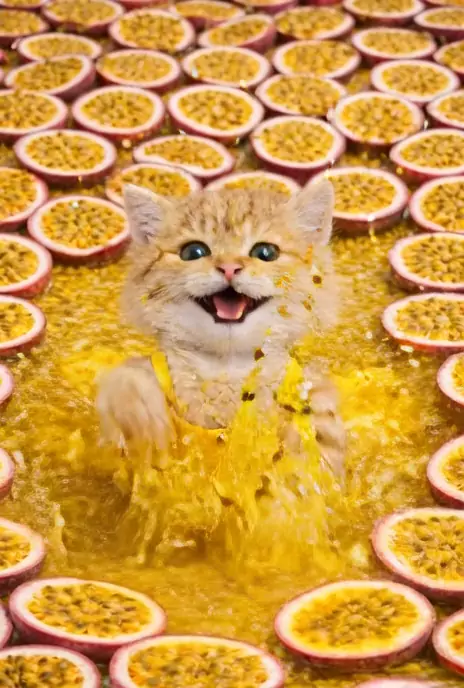 Que piscininha deliciosa! Cheia de Maracujá. #cats #funnycat #gatoslindos #fofura