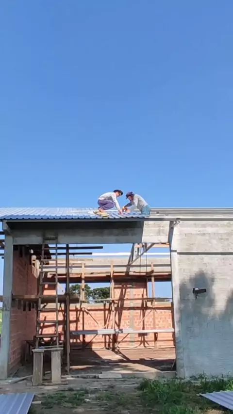 Montagem da cobertura do barracão. . . . . . . #construção #obra #roça #dozero