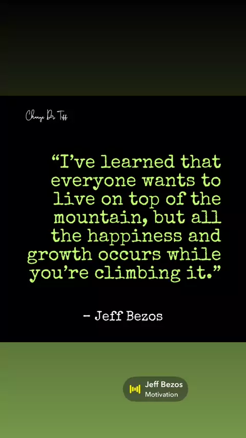 Success lies in the journey, not just the destination. Appreciate the process, even when it feels steep. #BeYourChange #ChangeDrTiff #JeffBezos