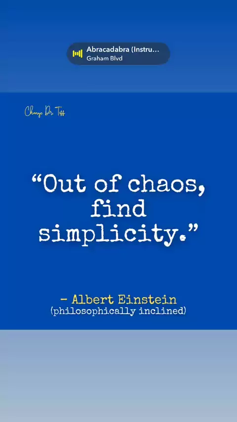 When life feels chaotic, look for clarity within. Simplicity will guide you toward meaningful change. #BeYourChange #ChangeDrTiff #AlbertEinstein