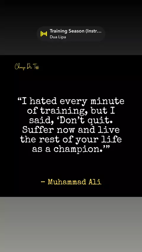 Temporary discomfort leads to lasting triumph. Stay focused on your bigger picture. #BeYourChange #ChangeDrTiff #MuhammadAli