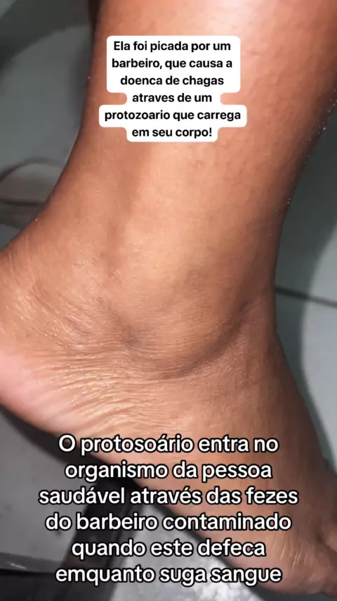 Ela foi picada por um barbeiro, que causa a doenca de chagas atraves de um protozoario que carrega em seu corpo!