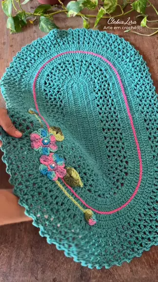 Tapete modelo xodozinho na cor verde jade é a prova que a beleza está nos detalhes e as flores aplicadas dão a essa peça a delicadeza que faltava🧶🥰🌸