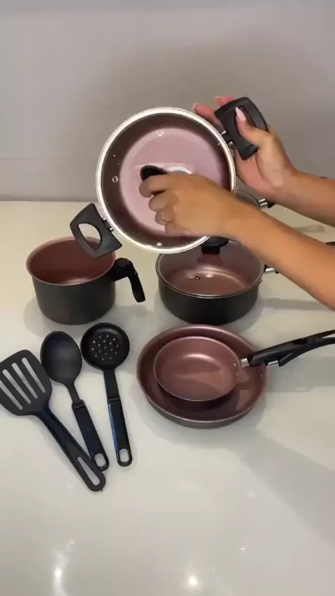 Conjunto Jogo de Panelas Teflon 10 Pçs Antiaderente Tampa de Vidro #panela #antiaderente #cozinha #receitas #culinaria
