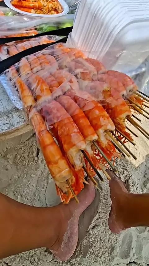 Preço do camarão na praia.