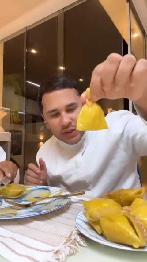 Lucas Maia , comendo pamonhã.