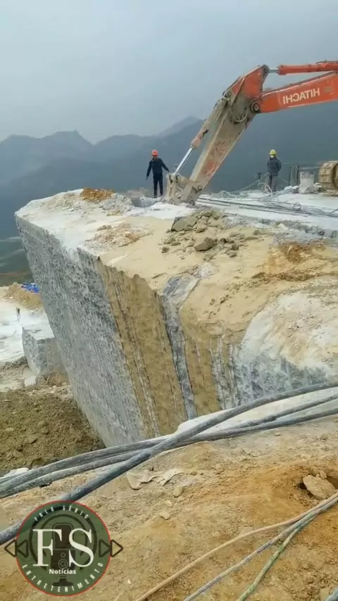 bloco de mármore sendo retirado da pedreira #noticias