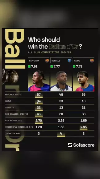 Comparando números do Top 3 da Bola de ouro! #boladeouro #Dembele #raphinha #lamineyamal #vinijr
